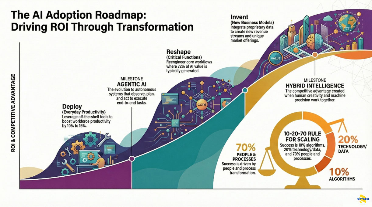 These aren’t just tools; they are “digital workforce” that are part of ONE TEAM that allows us to Reshape our core functions. Consider that AI-mature organizations generate 72% of their value not by doing old things faster (the “Deploy” phase), but by reinventing operations to achieve optimum Human & AI Collaboration.